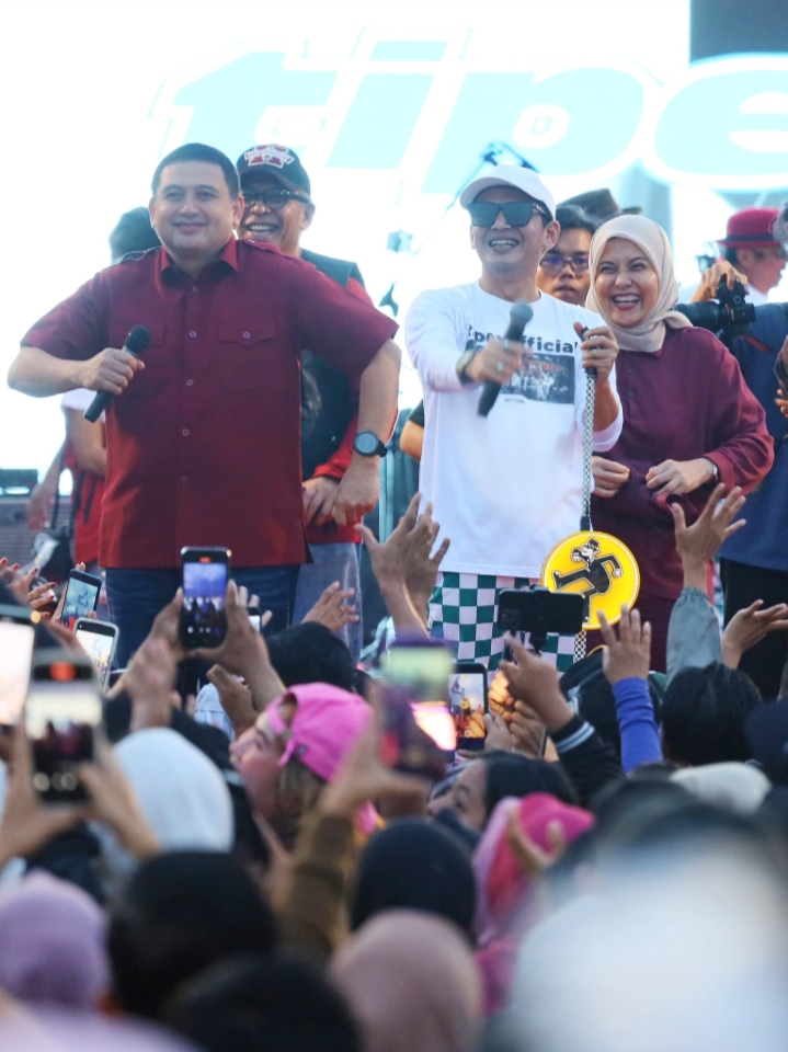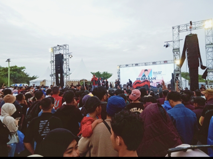 “Kita semua berkumpul untuk merayakan kemenangan, kita semua enjoy. Kemarin (kampanye) kita dihibur oleh Tipe-x, hari ini Tipe-x kembali datang lagi, waktu itu hujan, hari ini juga hujan,” tutur Appi semangati tim perjuangan