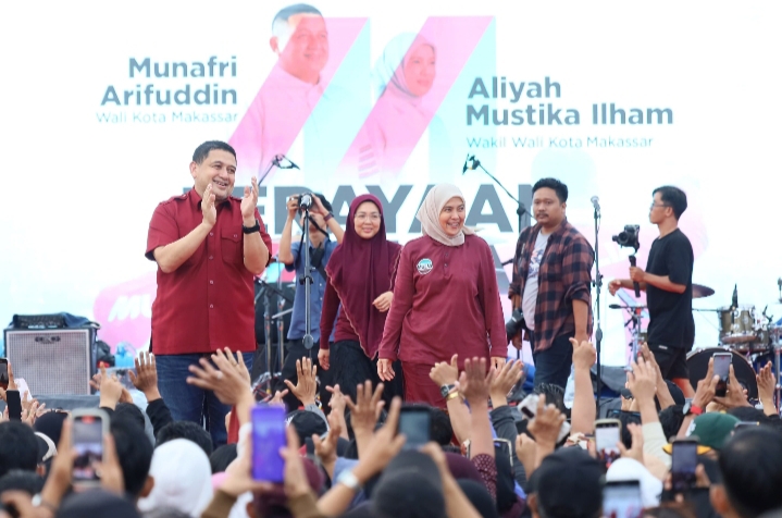 Mediasahabat.com-Makassar” – Munafri Arifuddin-Aliyah Mustika Ilham alias MULIA merayakan kegembiraan bersama tim pemenangan dan masyarakat Kota Makassar, di Pantai Bosowa, Jl. Metro Tanjung Bunga, Minggu (27/4/2025).