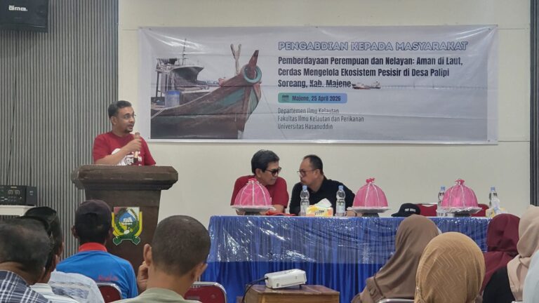 Mediasahabat.com-Makassar,-“Departemen Ilmu Kelautan Universitas Hasanuddin menggelar kegiatan pengabdian kepada masyarakat di Desa Palipi Soreang Kabupaten Majene, Sabtu (25/4). Kegiatan bertajuk “Pemberdayaan Perempuan dan Nelayan: Aman di Laut, Cerdas Mengelola Ekosistem Pesisir” ini menghadirkan tidak kurang dari 20-an orang dosen, staf dan mahasiswa pascasarjana Departemen Ilmu Kelautan Unhas.