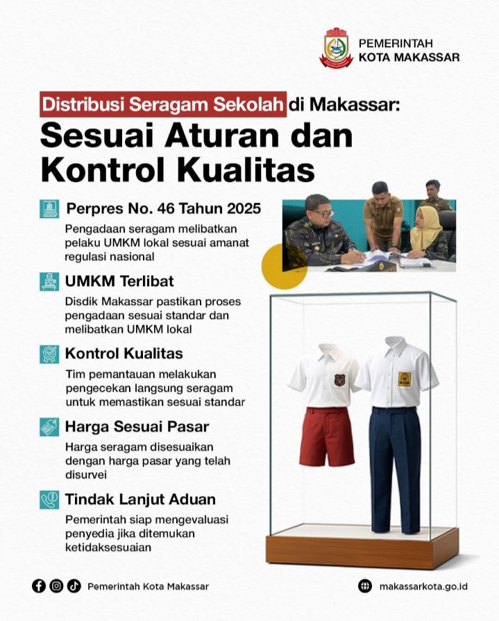 “Seragam gratis yang dibiayai oleh Pemerintah Kota Makassar tentu sangat membantu, terutama bagi masyarakat yang berada dalam keterbatasan ekonomi,” jelasnya.