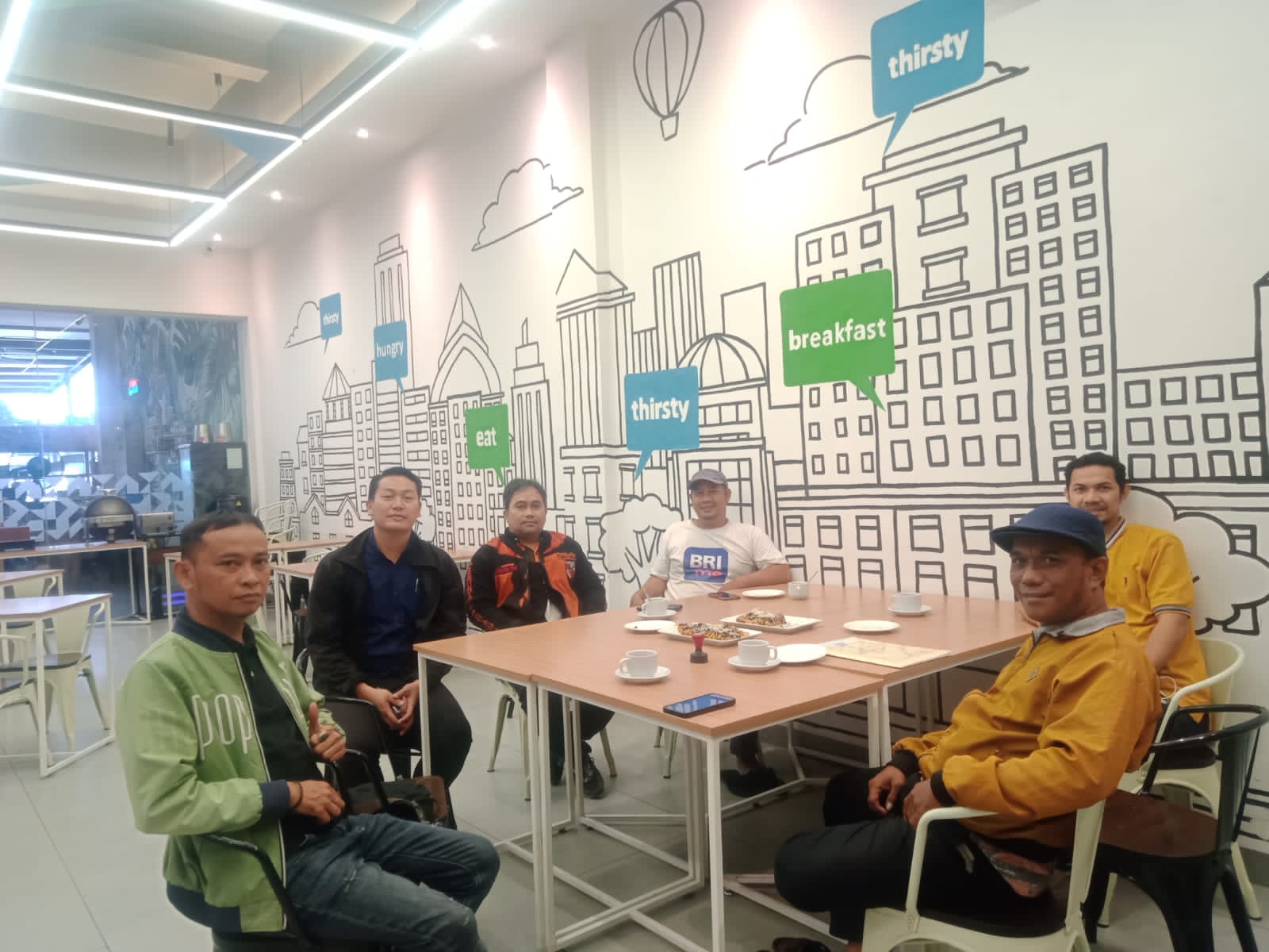 Silaturahim digelar santai di lobi atau Cafe Hotel yang dihadiri oleh GM Hotel Premier, Sutrisno dan Pemimpin Perusahaan Media Sahabat Mansyar alias Ancha.