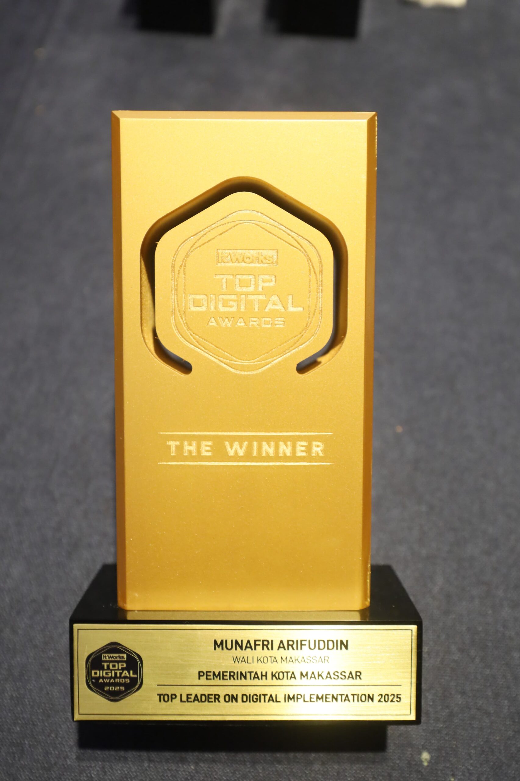 Penghargaan Kriteria Golden Trophy diberikan langsung kepada Wali Kota Makassar, Munafri Arifuddin dalam acara puncak TOP Digital Awards 2025, yang diselenggarakan pada Kamis, 4 Desember 2025, bertempat di Hotel Raffles, Ciputra World, Kuningan, Jakarta Selatan.