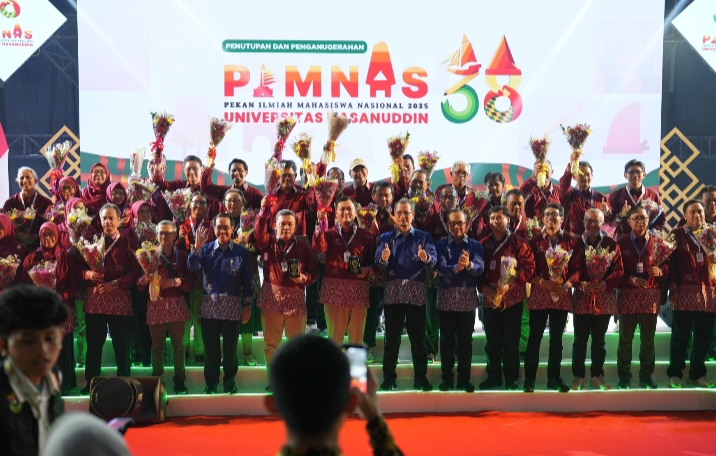 Mediasahabat.com-Makassar,-“Pekan Ilmiah Mahasiswa Nasional (PIMNAS) ke-38 di Universitas Hasanuddin resmi ditutup pada Kamis, 27 November 2025. Acara penutupan berlangsung meriah, menjadi momentum apresiasi terhadap kerja keras para peserta, dosen pendamping, tim juri, dan seluruh pihak yang terlibat dalam penyelenggaraan ajang ilmiah bergengsi ini.Kamis 28/11/2025