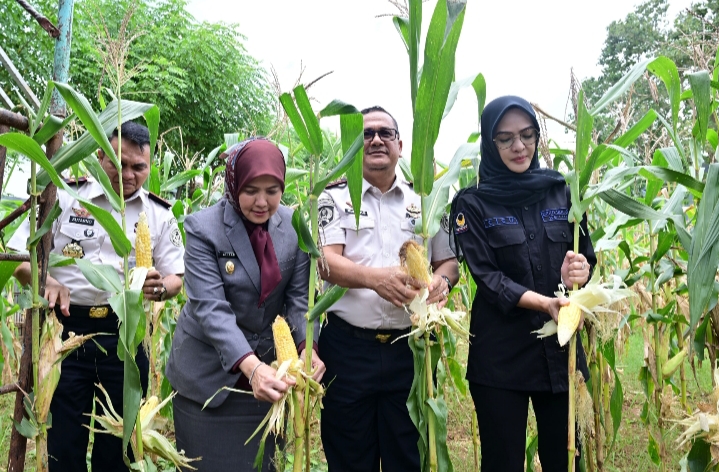 Para tamu undangan meninjau langsung hasil pertanian yang dikelola oleh warga binaan, mulai dari hortikultura hingga berbagai komoditas pangan lainnya.