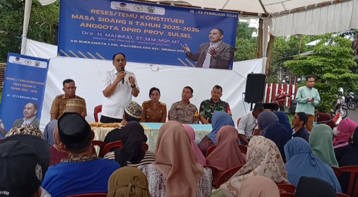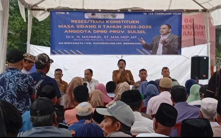 Mediasahabat.com-Makassar,-“Anggota DPRD Provinsi Sulawesi Selatan, Dr. Ir. H. Mahmud, ST., MM., MSP., MT., bersinergi dengan Lurah Paccerakkang, Henni A. Nandang, S.Sos., MM dalam kegiatan Reses/Temu Konstituen Masa Sidang II Tahun 2025–2026 yang digelar di Jalan Bukkamata 1, Kecamatan Biringkanaya.Senin, 23/2/2026