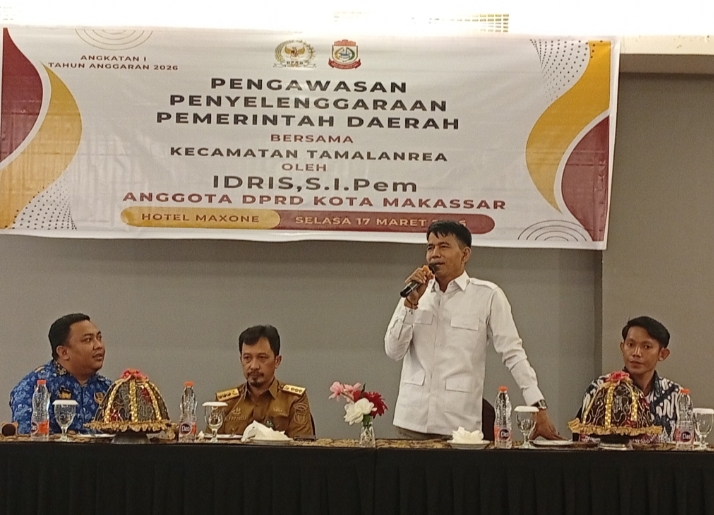 Mediasahabat.com-Makassar,-“Anggota DPRD Kota Makassar, Idris, S.I.Pem menggelar kegiatan sosialisasi bertajuk Pengawasan Penyelenggaraan Pemerintah Daerah bersama masyarakat Kecamatan Tamalanrea. Kegiatan tersebut berlangsung di Hotel MaxOne Makassar, Selasa (17/3/2026).
