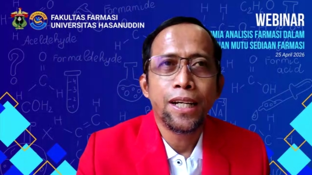 Kegiatan ini diselenggarakan oleh Laboratorium Kimia Farmasi, Fakultas Farmasi Universitas Hasanuddin melalui webinar bertajuk “Penerapan Kimia Analisis Farmasi dalam Penjaminan Mutu Sediaan Farmasi”, berlangsung secara virtual melalui Zoom Meeting, Sabtu (25/04).