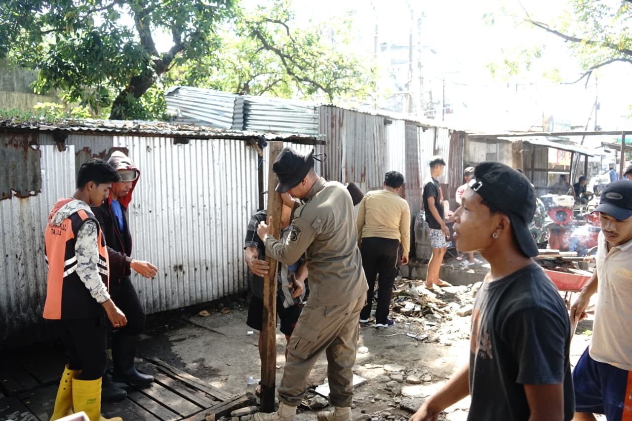 Tim Satpol PP Kecamatan Tallo bersama petugas kebersihan selanjutnya melakukan pembersihan sisa material di area tersebut.