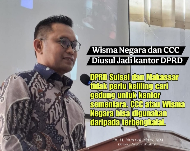 Direktur pada Lembaga Kebijakan Publik dan Politik, Nurani Strategic, Dr. Nurmal Idrus, MM, menyarankan kedua lembaga perwakilan itu menggunakan saja Gedung CCC di Tanjung Bunga, yang selama ini tak maksimal digunakan. “Gedung CCC saya kira layak. Daripada menggunakan gedung unit kerja lain yang pasti akan menganggu kinerja unit kerja disitu. Dari sisi kelayakan bangunan dan parkir juga sangat bagus di sana (CCC),” ujarnya.