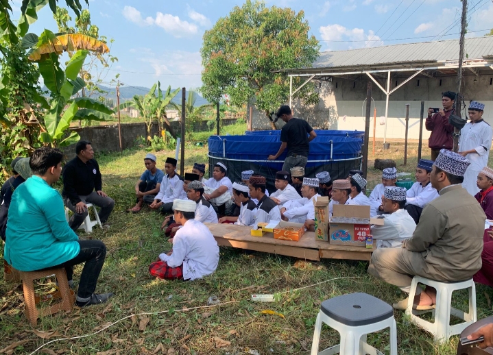 Puncak kegiatan berlangsung pada 13 Agustus 2024 melalui pelatihan teknik budidaya ikan nila dengan sistem bioflok. Santri dan pengelola pesantren dilatih langsung mulai dari cara menyiapkan air kolam, menebar bibit, mengatur pakan, hingga menjaga kualitas air.
