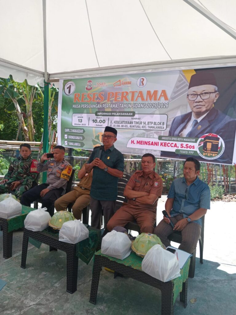 Mediasahabat.com-Makassar,-“ Anggota Dewan Perwakilan Rakyat Daerah (DPRD) Kota Makassar dari Daerah Pemilihan (Dapil) III, Meinsani Kecca, melaksanakan reses pertama masa sidang 2025–2026 di Kelurahan Buntusu, Kecamatan Tamalanrea, Senin (13/10/2025).